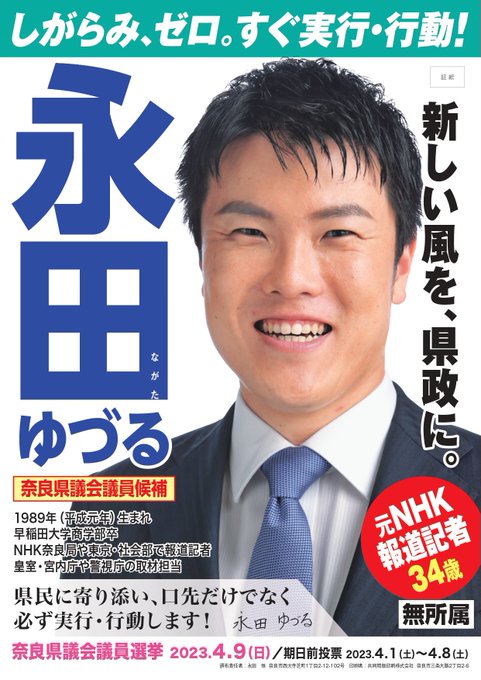 川田ひろし On Twitter 奈良県議会議員選挙 3 ポスター番号は1番です 川田ひろし 無所属 おざきみつのり氏 国民民主党推薦 奥山博康氏 自民党公認 の3者での選挙戦です 正々堂々と嘘をつかずに頑張ります Https T Co 8vqvlw6ypy Twitter